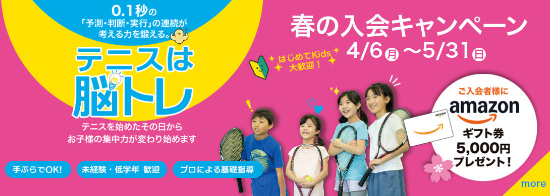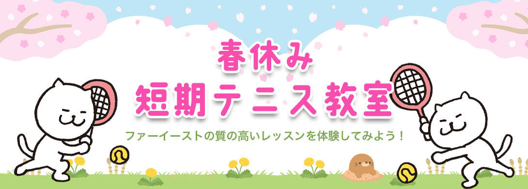 初心者大歓迎!また、こんなジュニアに最適です「春休みだけテニスをしてみたい。」「1回の体験レッスンでは物足りない」「早く上手くなりたい!」